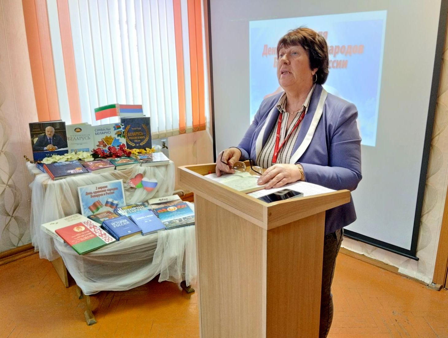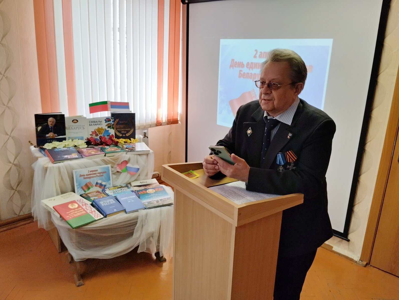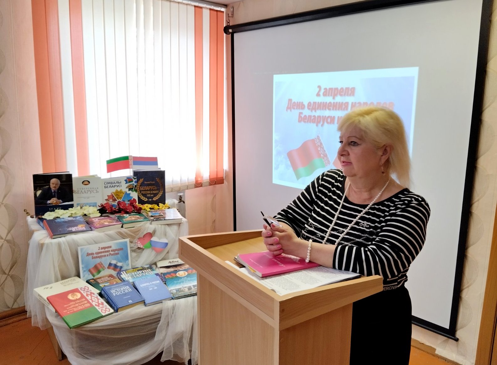 В центральной библиотеке проведён информационный час «Одной судьбой связаны» ко Дню единения народов Беларуси и России. Учащиеся средней школы города узнали о том, как создавалось союзное государство двух славянских народов, какие значимые документы были подписаны, которые определили дальнейшее развитие сотрудничества в различных областях и сферах деятельности обоих государств. Присутствующие выразили свои мысли о том, что нас объединяют единые цели и взгляды в деле сохранения и развития отношений, дружбы, сотрудничества и добрососедства Республики Беларусь и Российской Федерации.